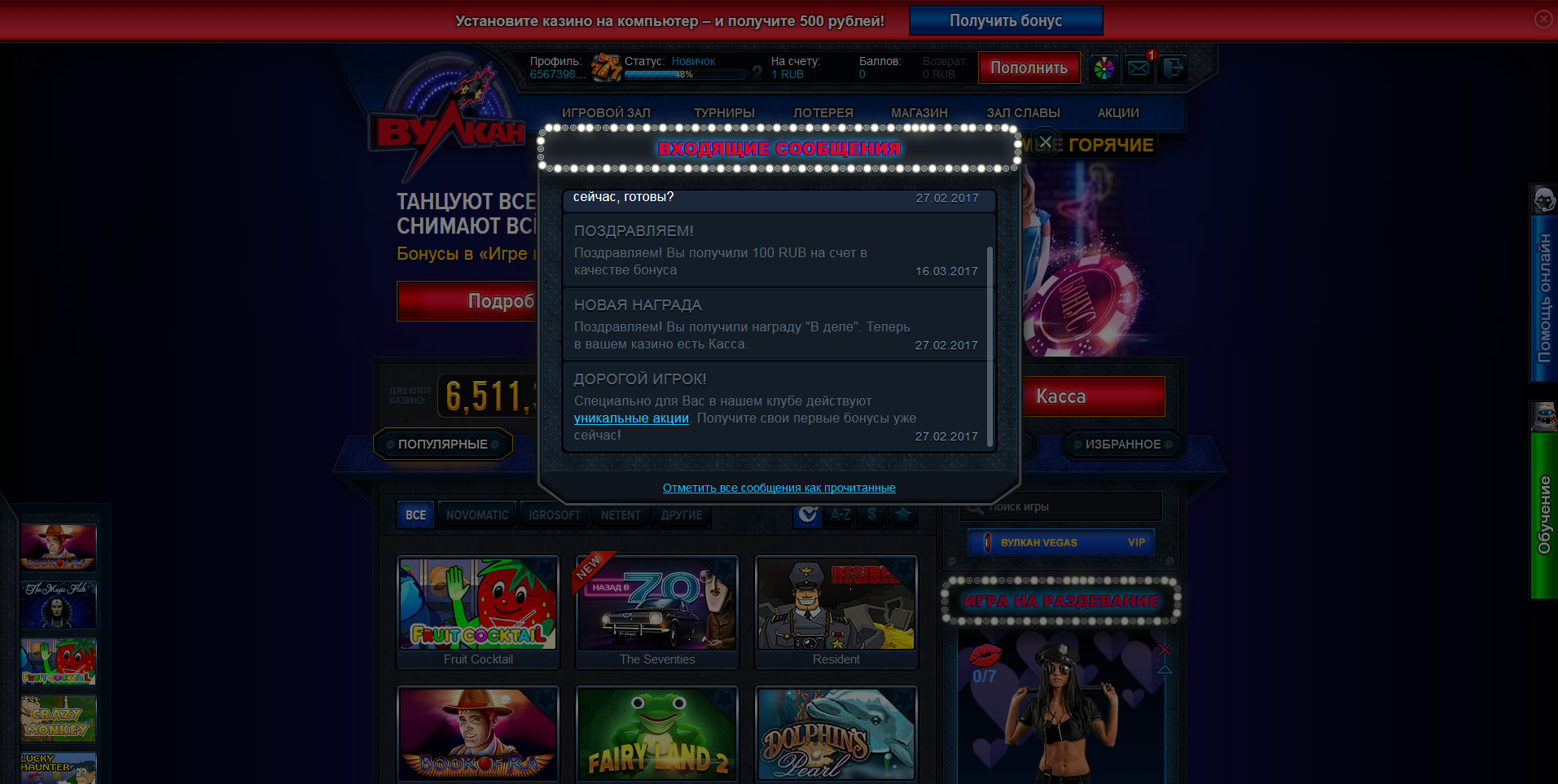 • Скачать обновления (Скрипт казино вулкан с модулем - раздень девушку) 💊